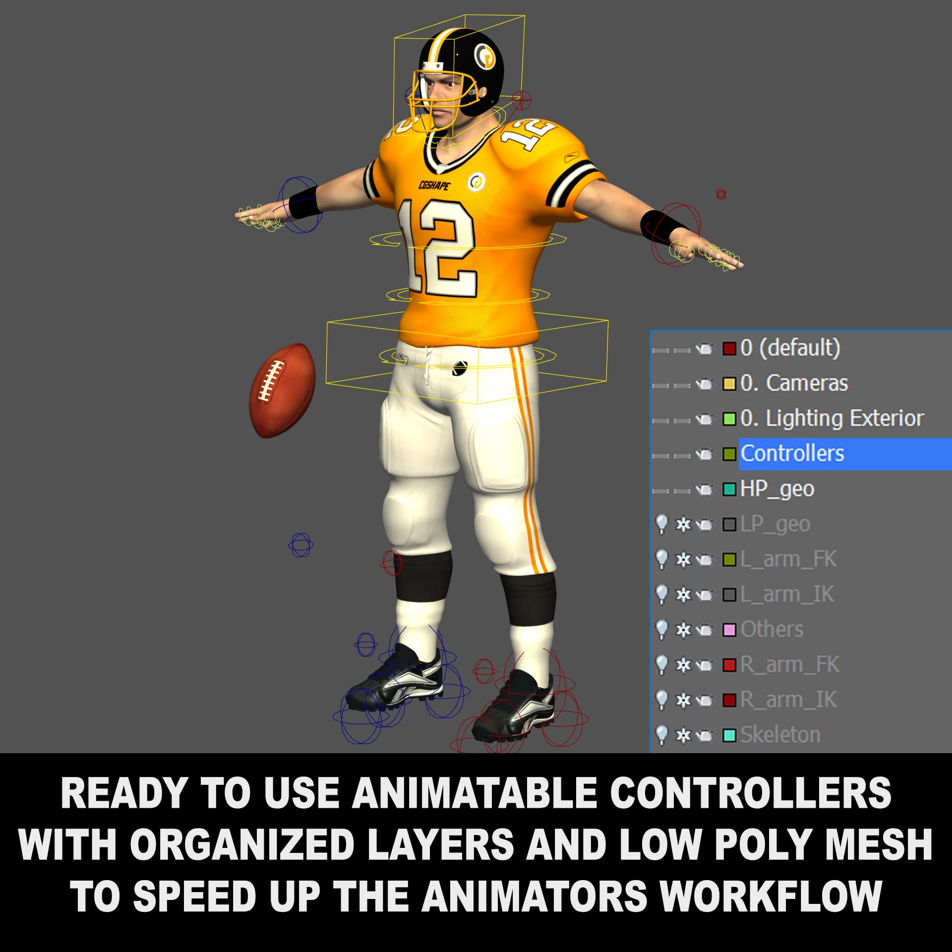 The base control mesh of the player has been included without being collapsed so you can subdivide the geometry as much as you need in your own 3D software. The accurate details of the model work perfectly for extreme close-ups.